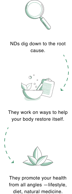 NDs understand that medicine is just one piece of the puzzle when it comes to your wellness. To figure out where it might fit, and what the other pieces are, they always look at the big picture: