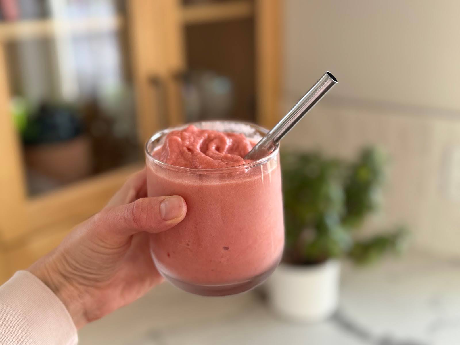 - 3-4 cups frozen sliced organic strawberries (or other favourite frozen fruit)