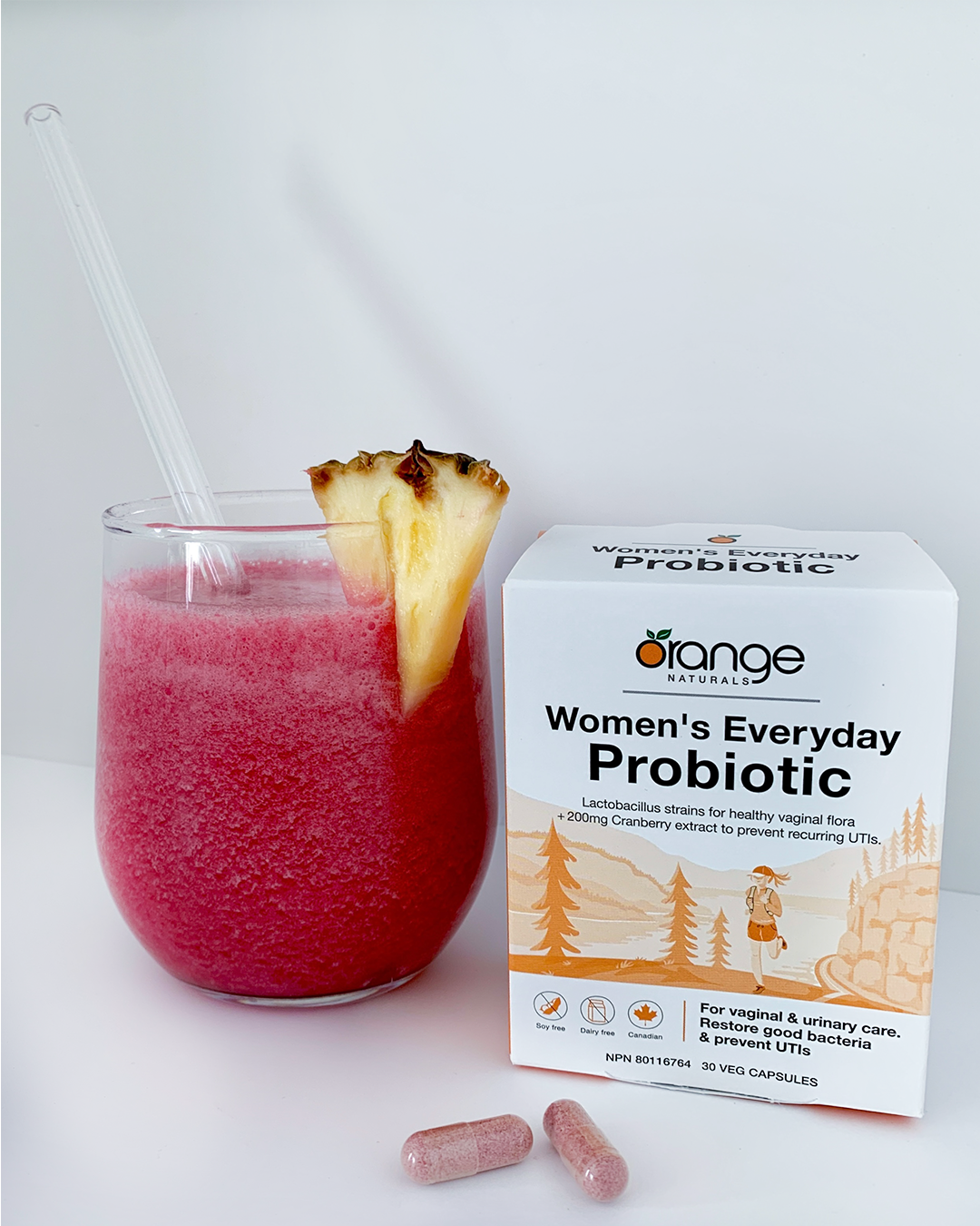 Try this Tropical Sweet V Smoothie! Powered by fruits to support vaginal health and our Women’s Everyday Probiotic to help rebalance good bacteria in the vaginal microbiome!